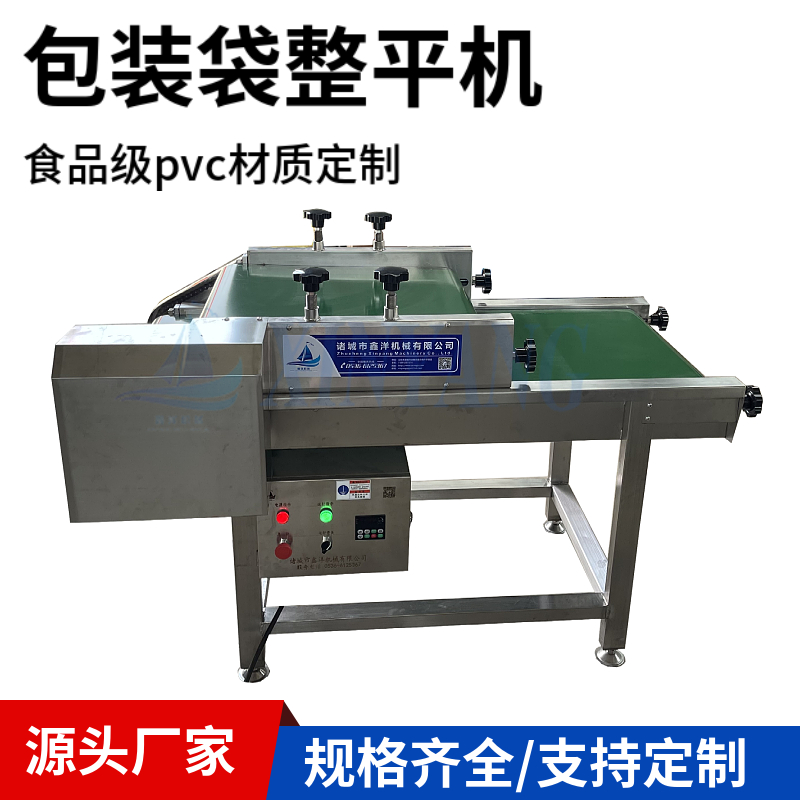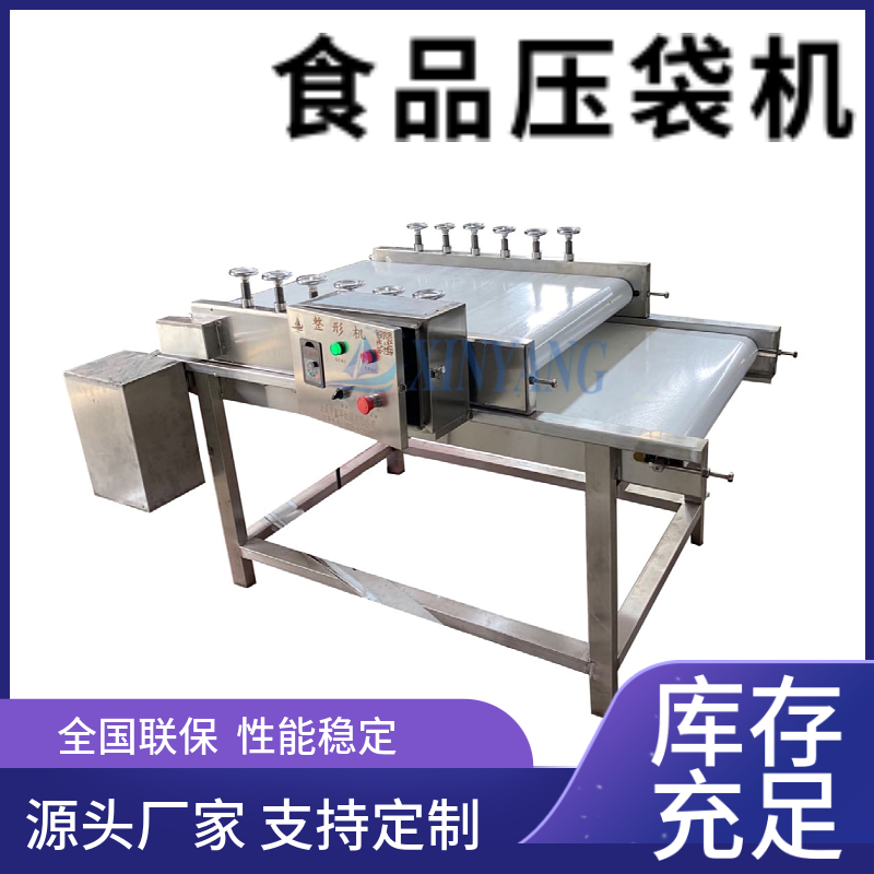 食品整形機可對包裝袋內的食品進行整形,利于物料的殺菌,裝箱整齊。外型整體采用優質SUS304不銹鋼制作,符合國家食品行業使用標準。運行平穩,噪音低。由人工布料,經過上下層皮帶整壓以后,把包裝的高凸部分壓平,使包裝袋厚薄均勻,此設備壓料的厚度可根據不同的包裝上下自由調節。