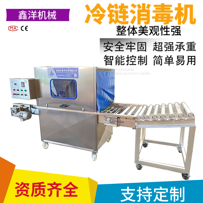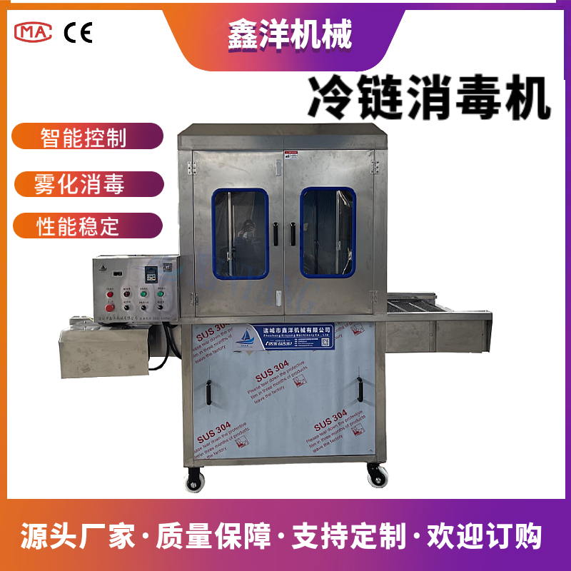 冷鏈消毒機是我公司針對市場需求結合日本清洗技術自主研發制造的一款消毒設備,且具備CMA資質認證報告。設備架體采用sus304不銹鋼制作,采用360度噴霧隧道式輸送消毒方式,采用超聲波霧化方式從上、下、左、右、前、后六個方向同時對包裝箱物體進行霧化消殺,超聲波霧化發生器將消毒液體高分子霧化(2-8um)后輸入到霧化室,霧滴可降落在物體表面,對輸送物體表面進行覆蓋,起到消毒滅菌作用。消毒過程方便、快捷、該設備為框架式設計,在使用過程中不會變形。主要部位可拆卸,方便維修,底座采用不銹鋼焊接而成經久耐用。特別適用于冷凍食品、外包裝箱、物流等場所,設備可根據用戶不同箱體大小形狀進行加工定做。